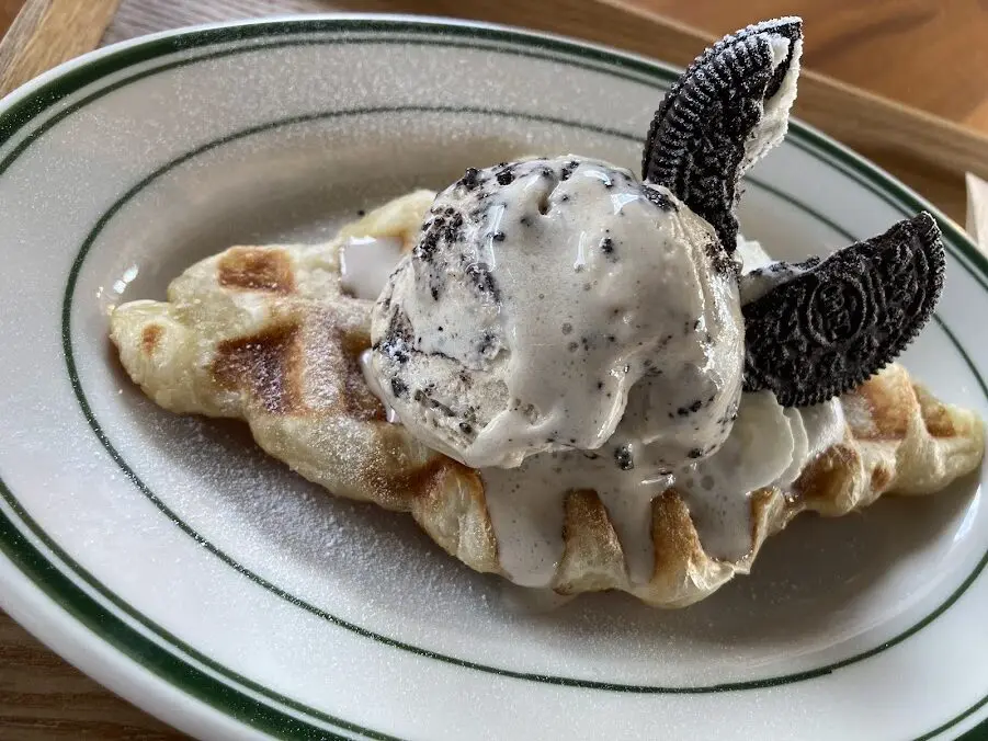 もちろん、このあとスイーツも行きます! 話題の新感覚スイーツ、クロッフル(5種類、各730円税込)は外はカリッ、中はふんわり。アイスが溶ける前に大急ぎで食べたい!