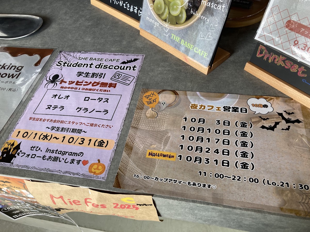 こちらでは、学生割引や夜カフェも。10月31日(金)ハロウィンの日も夜カフェがありますよ! 詳細は公式Instagramをフォローして。