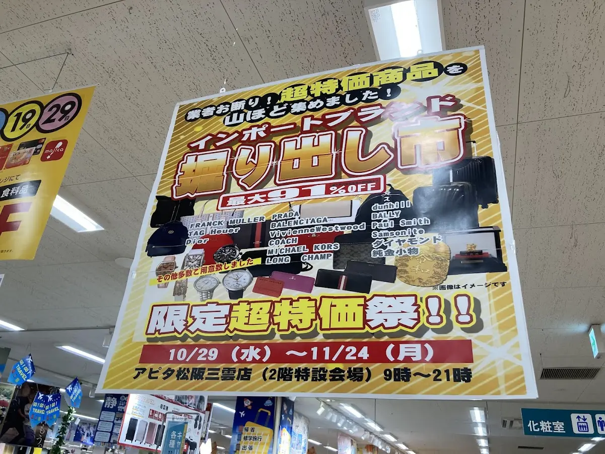 また見どころはOPENするドンキだけではありません。アピタ松阪三雲店では、10月29日(水)よりインポートブランド掘り出し市をスタート。