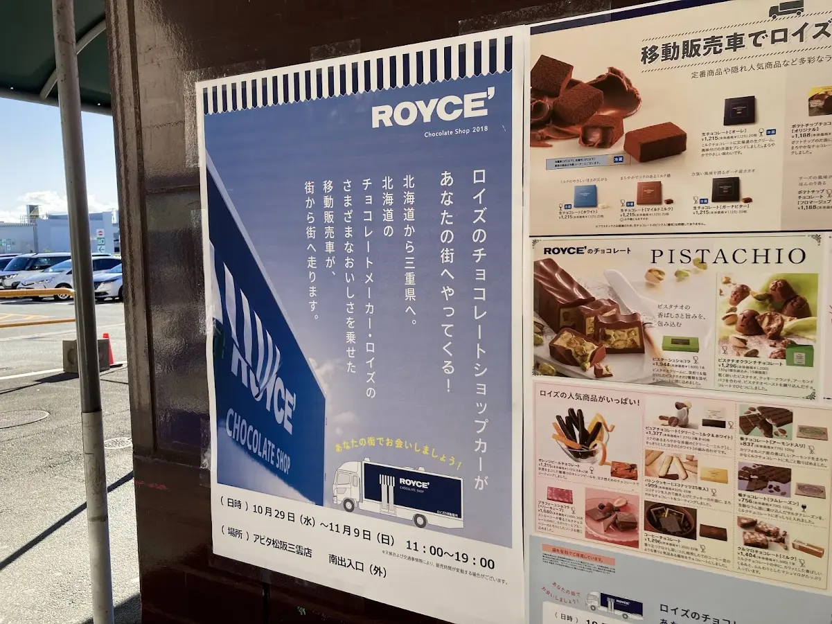 さらに、10月29日(水)~11月9日(日)11:00~19:00で北海道のチョコレートメーカーロイズの移動販売車がアピタにやって来ます。