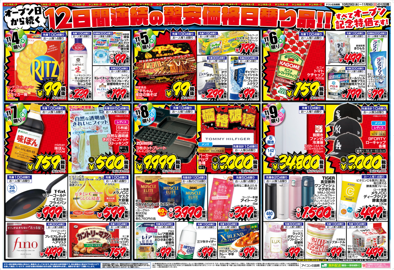 またオープン記念価格がならぶ、12日間連続の日替わりお買い得品にも注目です。