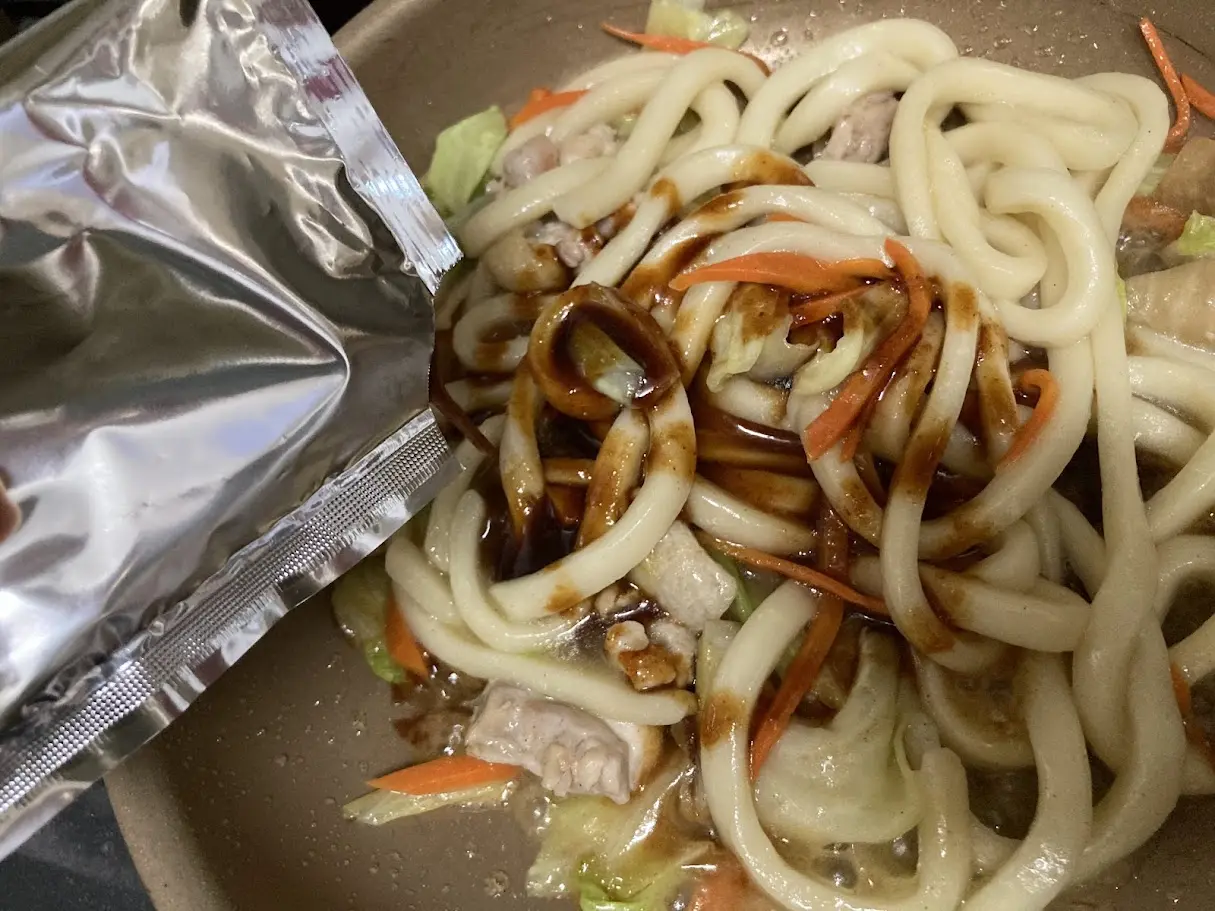 かいだ食品から新発売された「まっつぁかとりみそ焼きうどん」を実際に食べてみました!