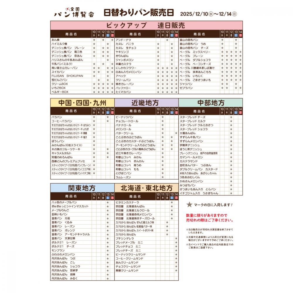 各地方の人気のパンが大集合!商品は地方ごとに日替わりで登場!毎日来ても楽しいイベントです。