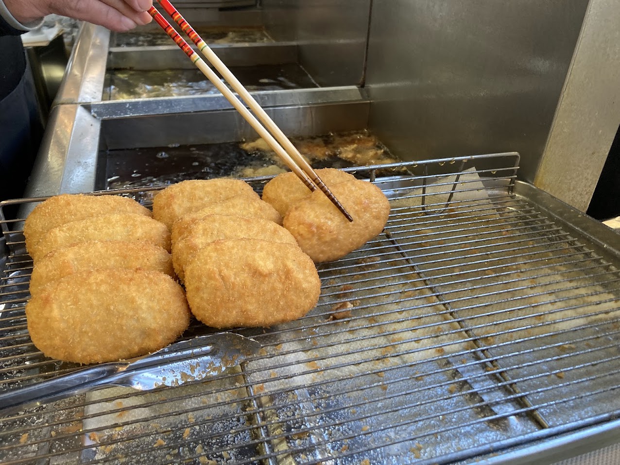 注文して待っている間も、他の方の注文したコロッケがどんどん揚がっていきます。おいしそう!