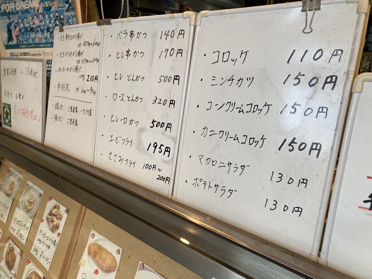 こちらでは注文してから、商品を揚げてくれます。コロッケメニューは、コロッケ、コーンクリームコロッケ、カニクリームコロッケの3種類です。