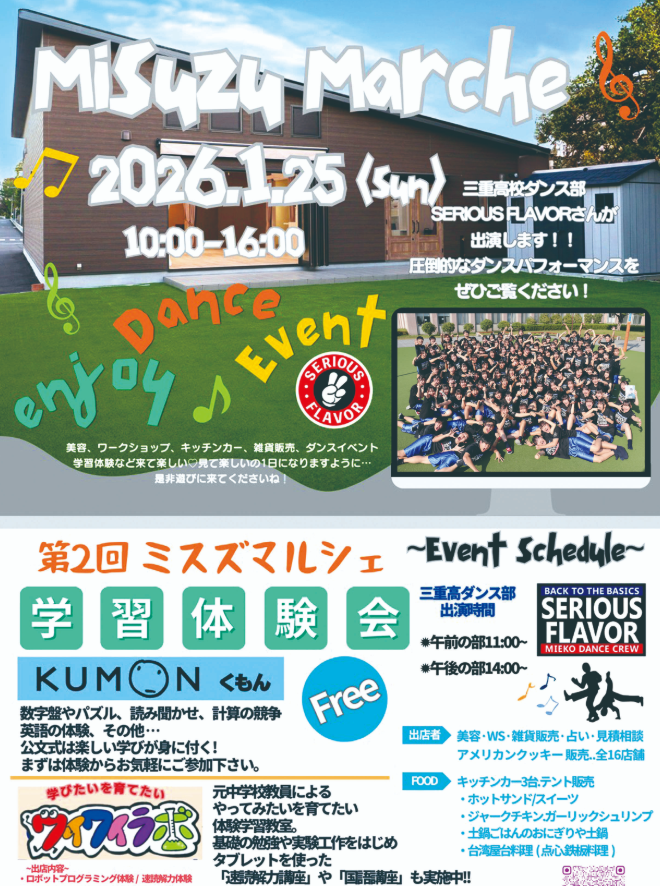 【松阪市】1/25(日)楽しいがいっぱいの「ミスズマルシェ」へ! 三重高ダンス部のステージにも注目です☆