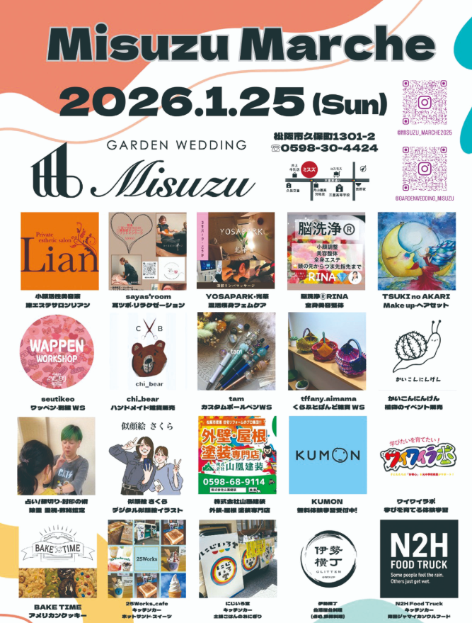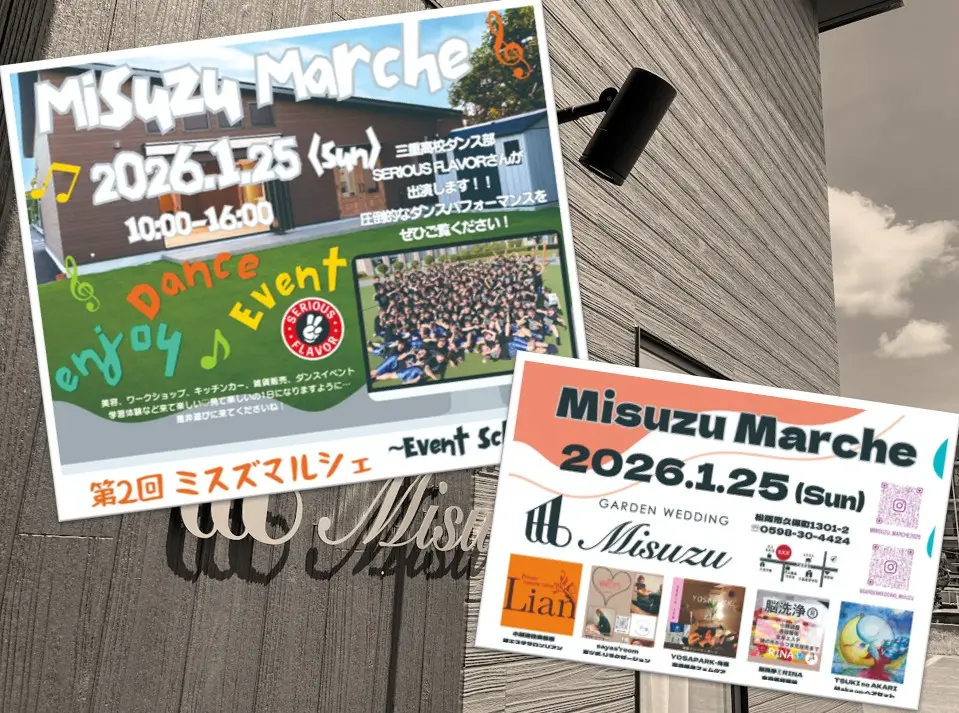 そんなガーデンウェディングミスズで、定期的に開催されているのが、イベント「ミスズマルシェ」。今回は2026年1月25日(日)10:00~16:00で開催されます!
