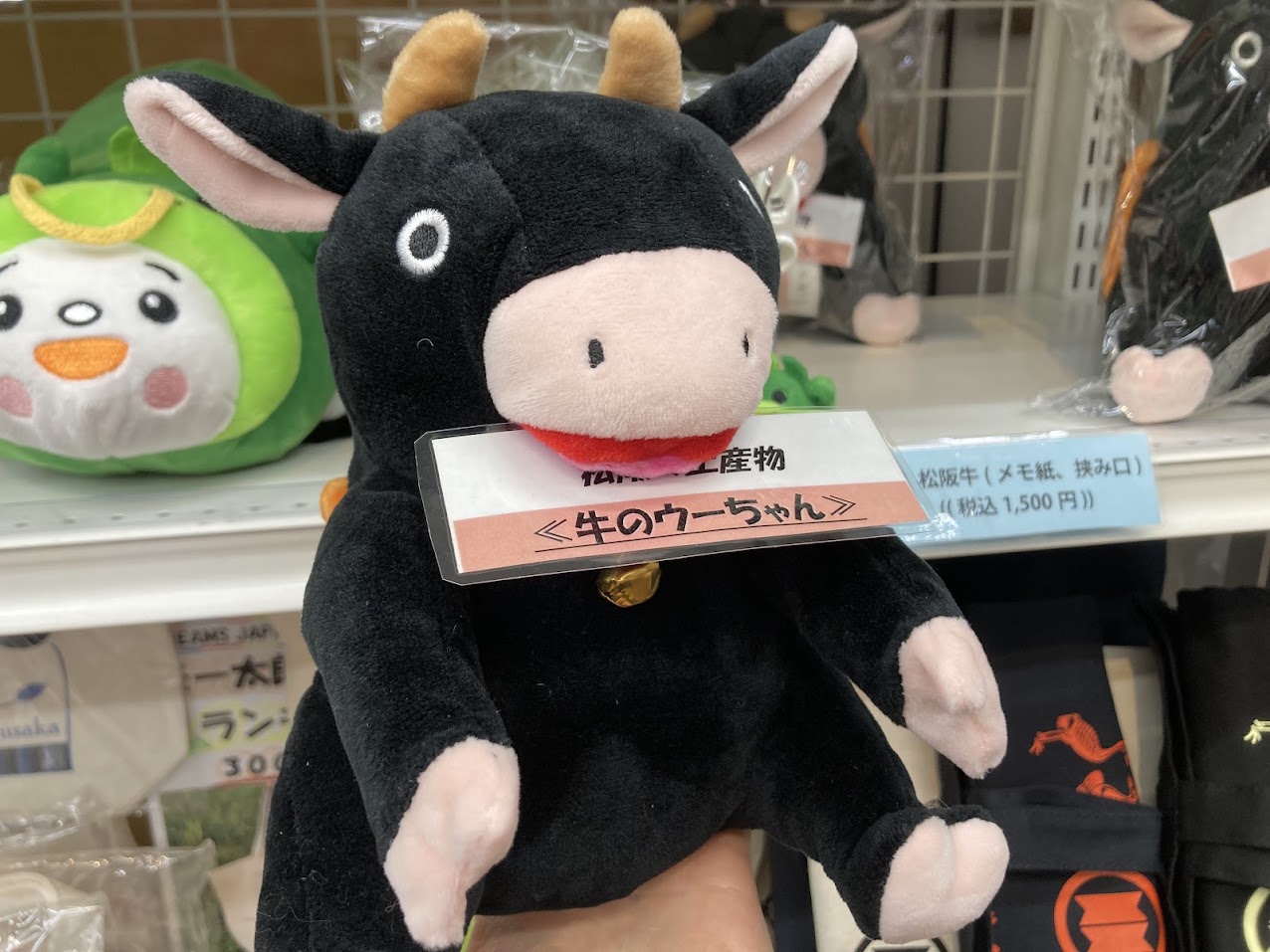 一方こちらはぬいぐるみの「牛のウーちゃん」1500円。口の部分がマグネット仕様になっていて、メモを挟めるようになっている、働きもののぬいぐるみです。