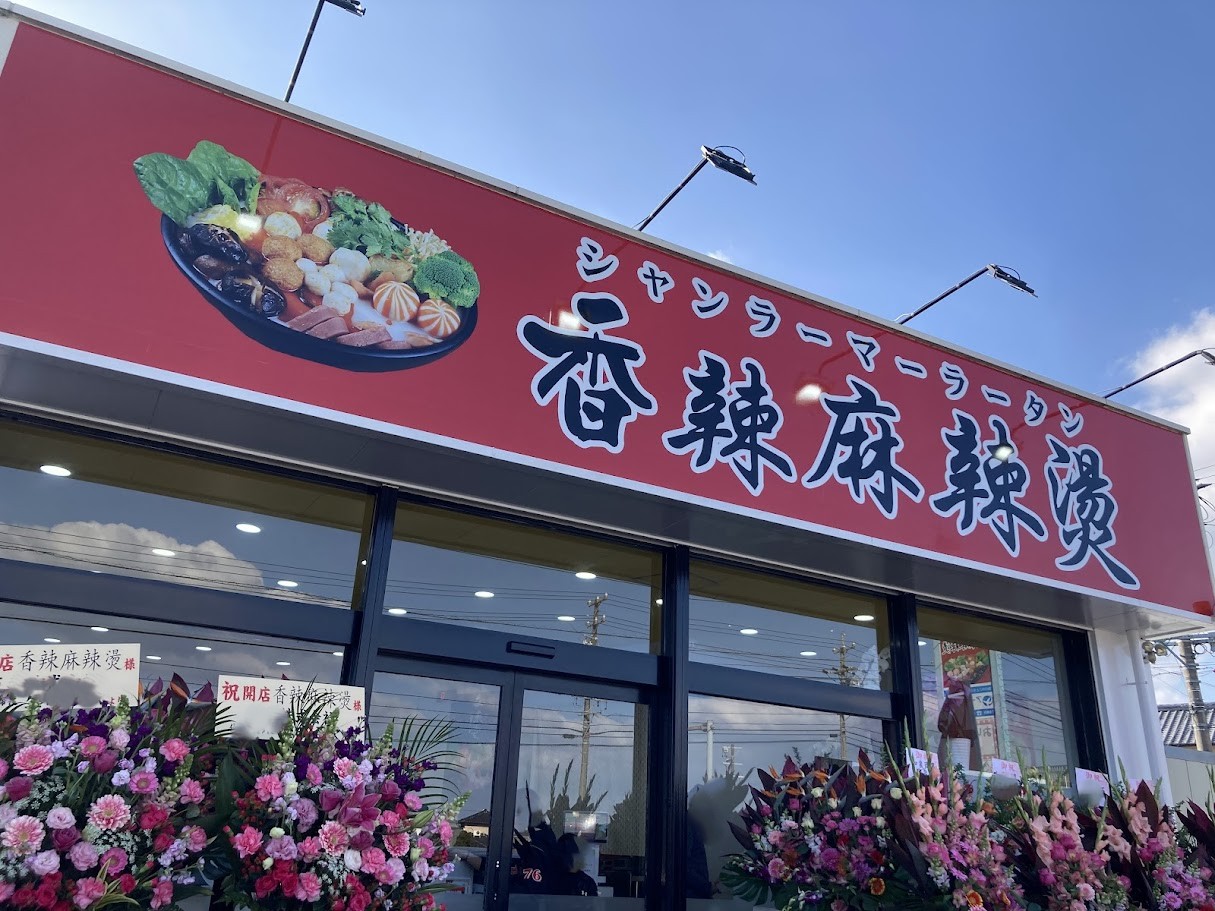 「香辣麻辣湯(シャンラーマーラータン)」は、中国発祥の人気グルメ「麻辣湯(マーラータン)」を、自分好みの具と味付けで楽しむことができるお店。松阪店は、松阪市垣鼻町に2026年2月1日(日)にニューオープン! 店頭にはたくさんのお花が飾られていましたよ。