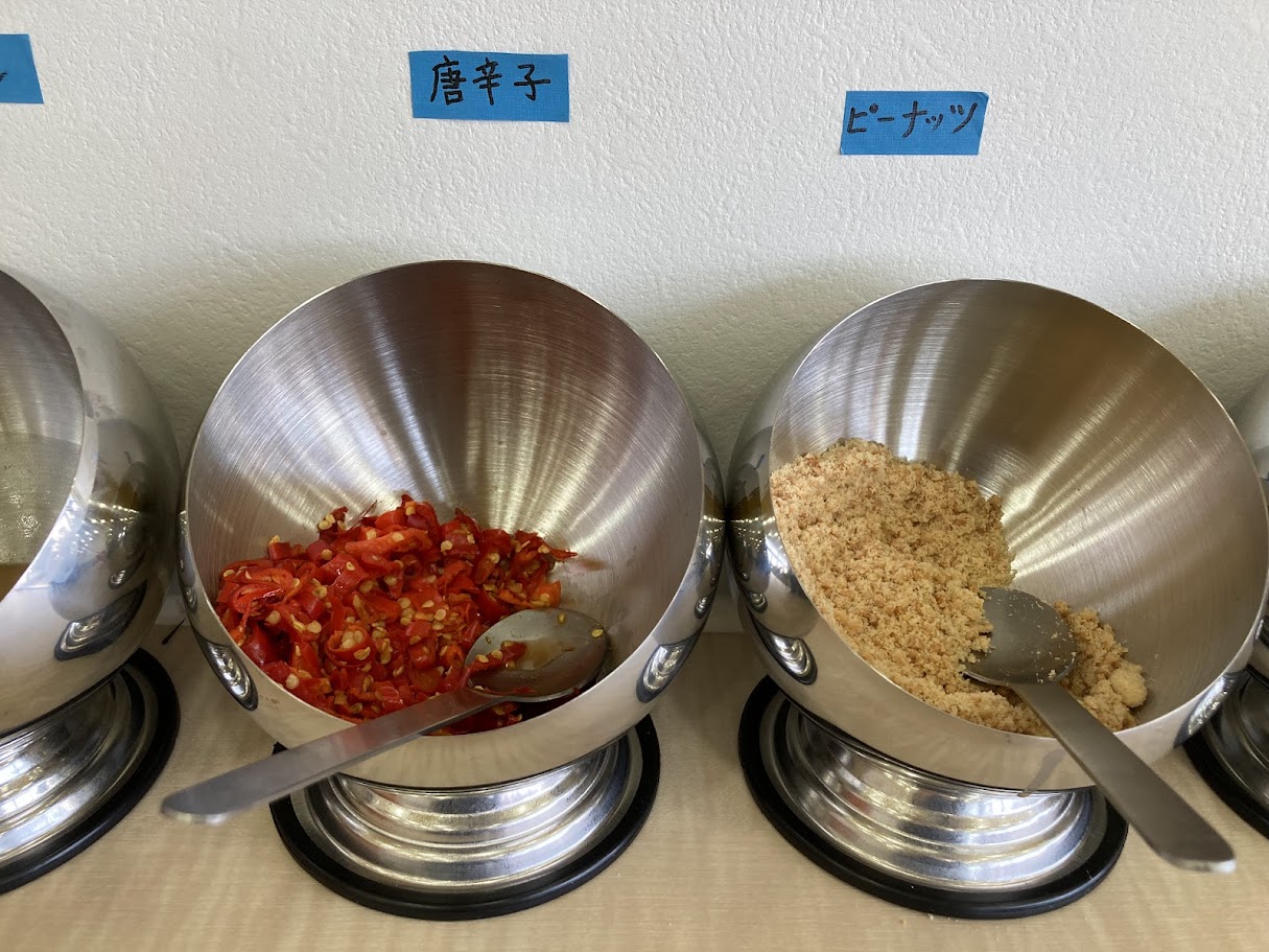 調味料は無料なので、たくさん選んでもOK! 食べ進めて、あとから取りに行くこともできます。