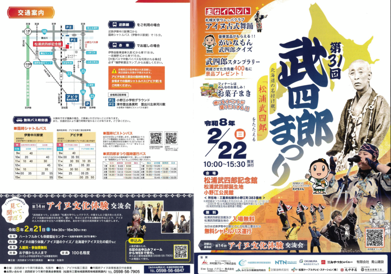 【松阪市】2/22(日)は「第31回武四郎まつり」が開催されます! 前日21(土)にはプレイベントもありますよ☆