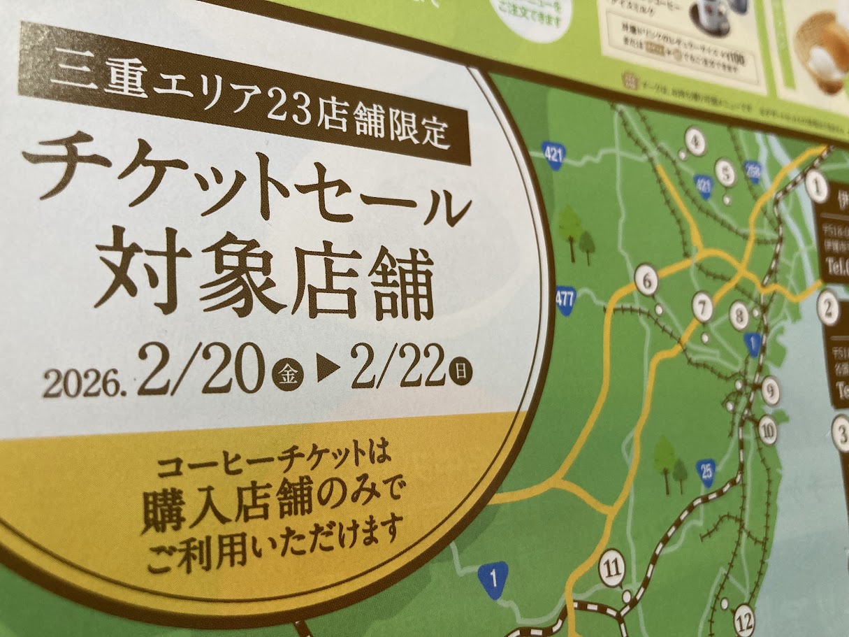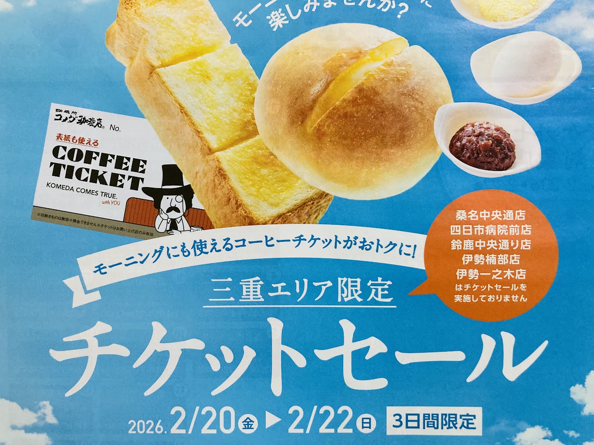 2026年2月20日(金)~22日(日)の3日間、コメダ珈琲店で三重エリア限定の「チケットセール」が開催されます。