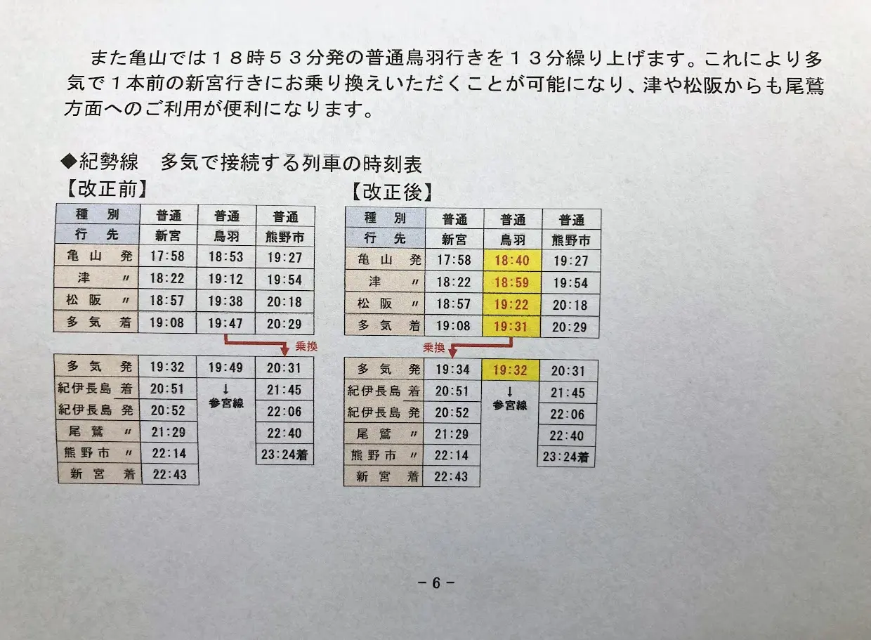 今回のダイヤ改正では、東海道新幹線で臨時「のぞみ」が増設されるなど、新幹線の利用がより便利に。出張などで新幹線を利用する方は、チェックしておきましょう。また、松阪市・多気町周辺に関連するダイヤについては、一部、亀山~多気方面への乗り継ぎが便利になります。いつも利用する列車の時刻に変更がないか、ダイヤ改正までにチェックしておきましょう!