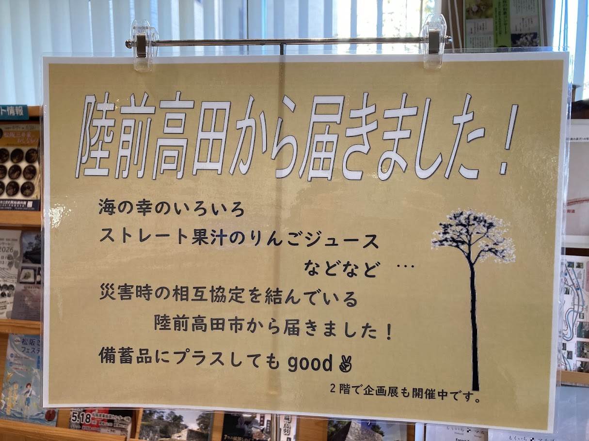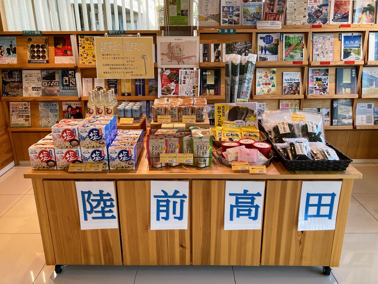 豪商のまち松阪観光交流センターの1階では、陸前高田市の物産が並んでいます。