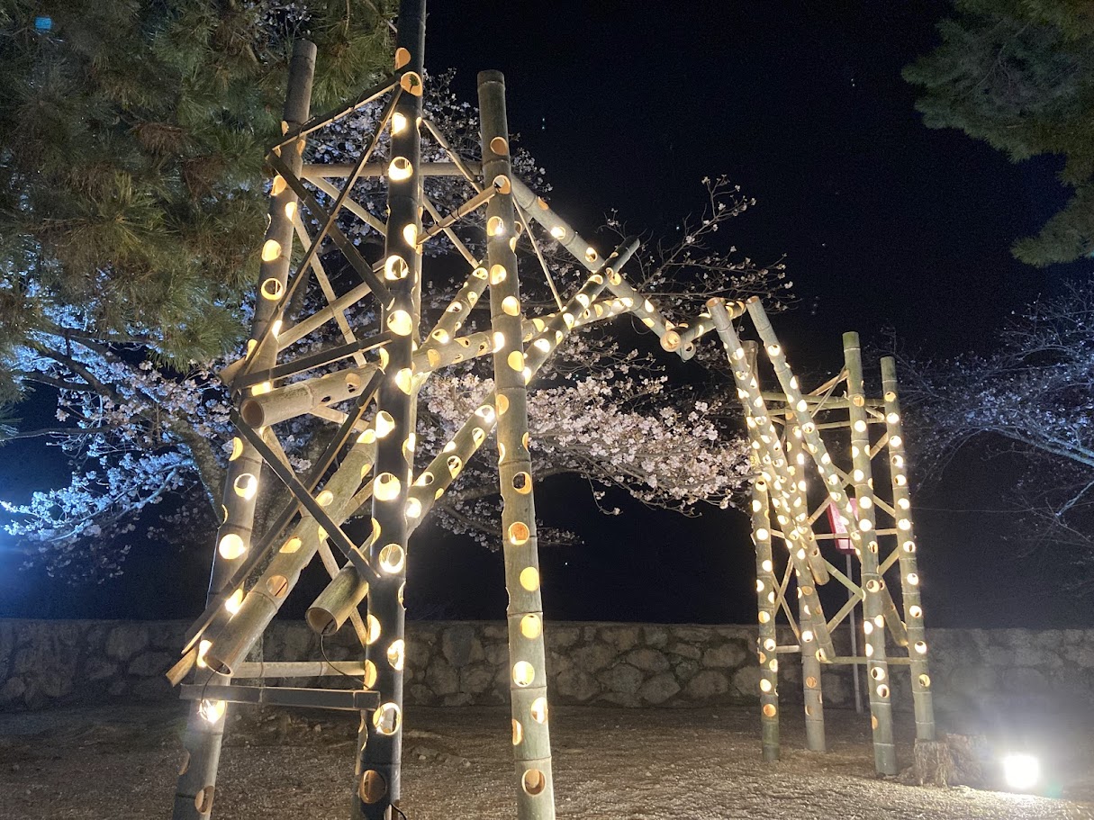 月見櫓跡では竹灯りのフォトスポットが!