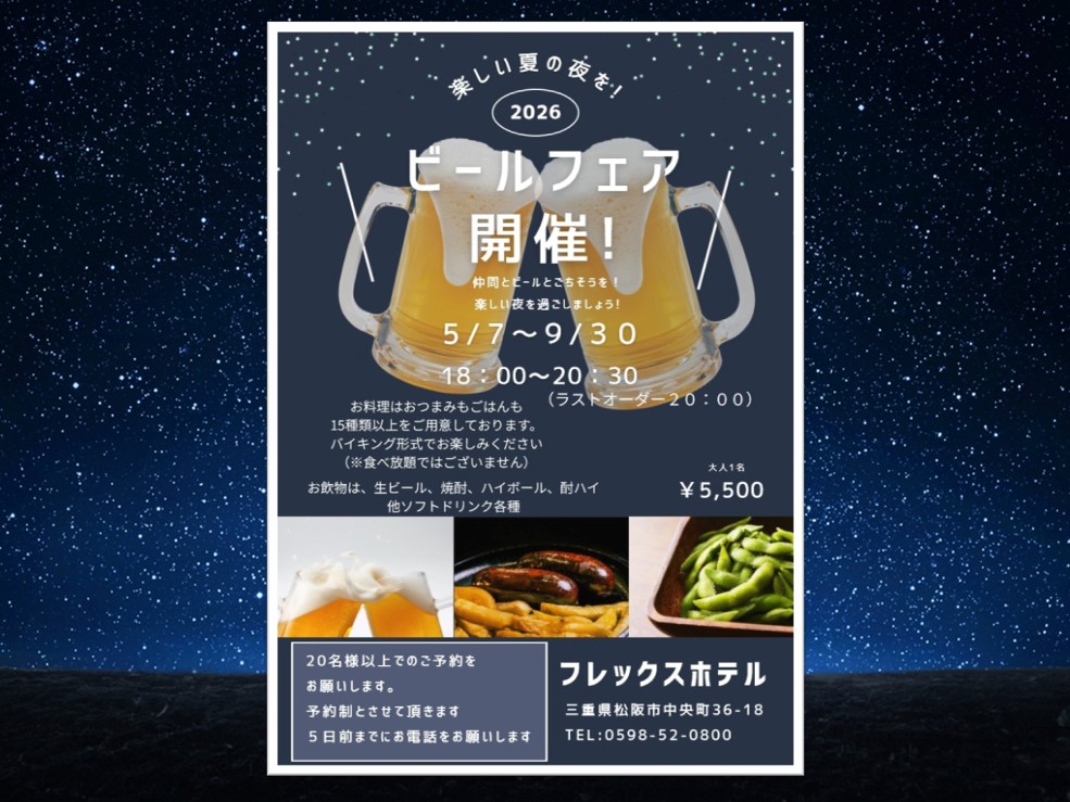 また、連休明けの2026年5月7日(木)からは、大人に嬉しいビールフェアもスタート。20名以上で5日前までの予約で利用できる、ビール&おいしいお料理・おつまみが楽しめる、特別なフェアです。9月30日まで開催しているので、何度でも利用しましょう!