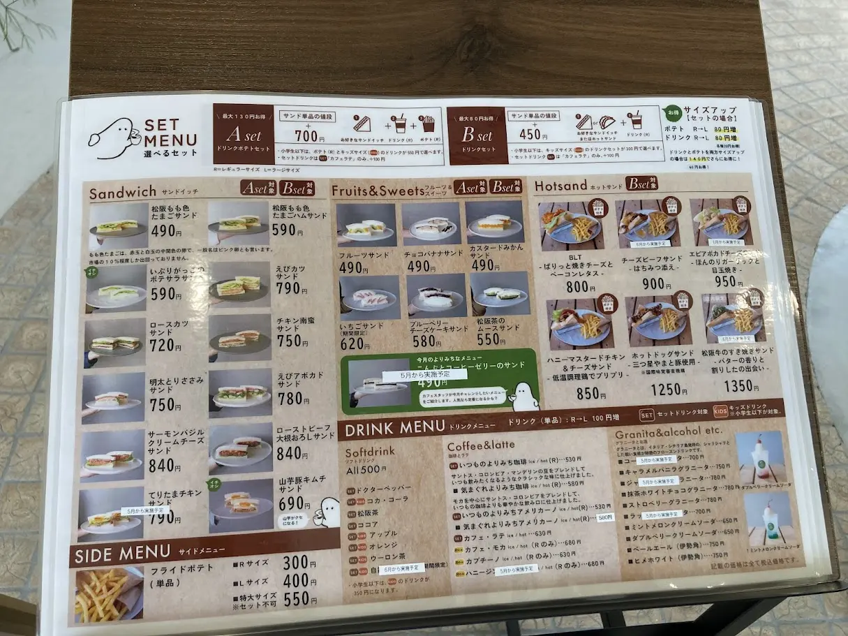 現在はプレオープン中なので、メニューを限定していますが、こんなにたくさんの種類があります。ホットサンドやポテトが付いたセットもありますよ!
